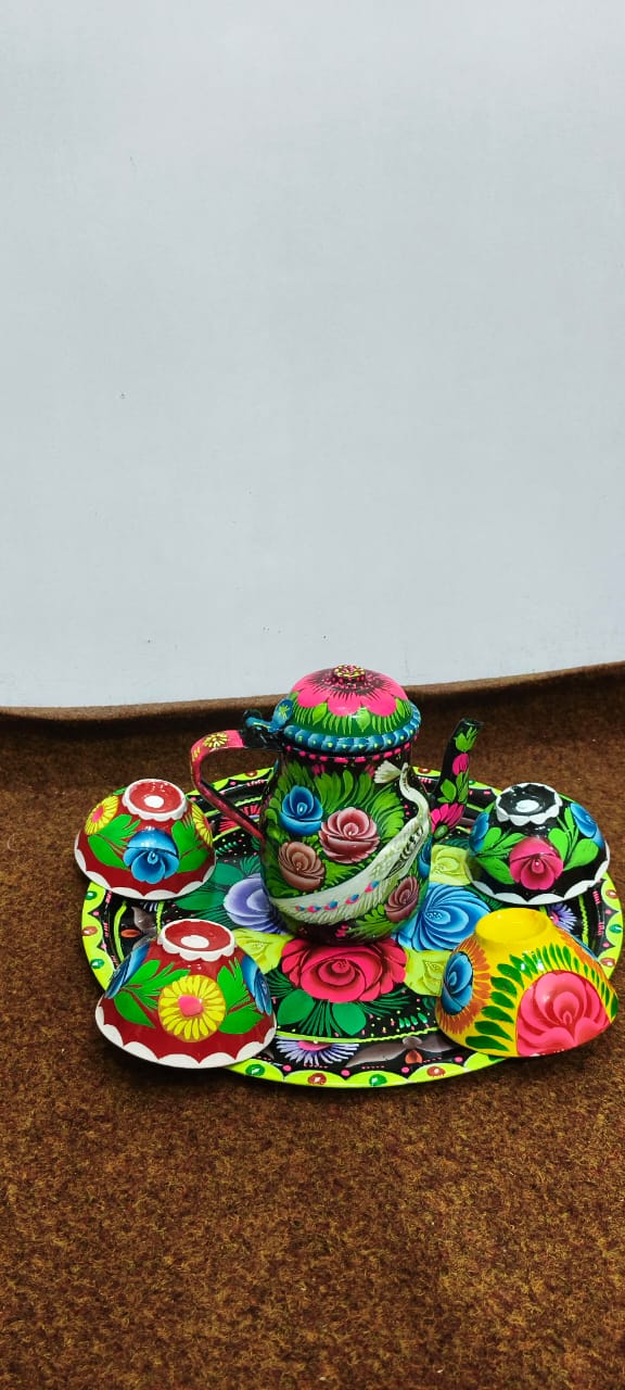 Add a splash of vibrant culture to your tea time with this Cattle-themed 4-cup set and matching tray, beautifully hand-painted in traditional Pakistani Truck Art. Crafted with intricate patterns, bold colors, and floral motifs, this set brings a touch of heritage to your table. Perfect for serving tea, coffee, or kahwa, it’s ideal for gifting, home décor, or special gatherings.